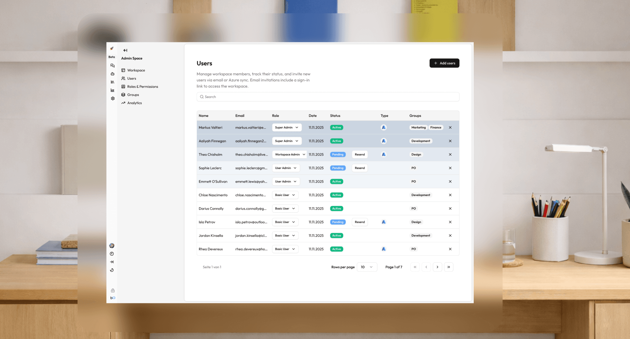 Manage groups and roles within the workspace