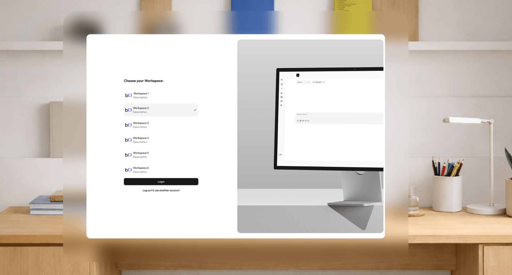 At login: If you have multiple workspaces, you'll be prompted to choose which one to enter. You can change this later at any time without logging out.